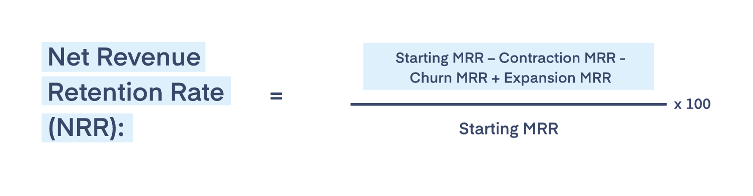 NRR tells you how much monthly or annual recurring revenue you’ve retained from current customers across a certain period.