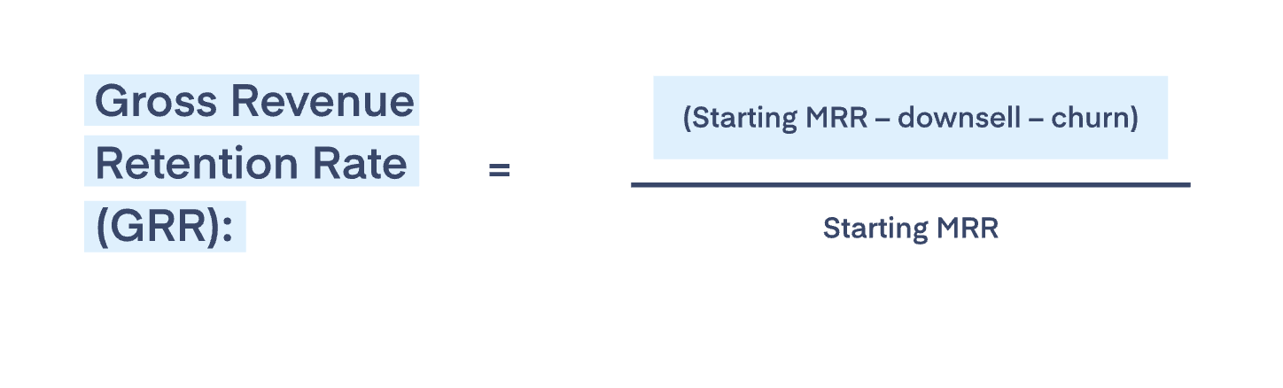 So, what’s the difference between gross revenue retention rate (GRR) and net revenue retention rate? It's simple, GRR doesn’t include upgrades or cross-sells.