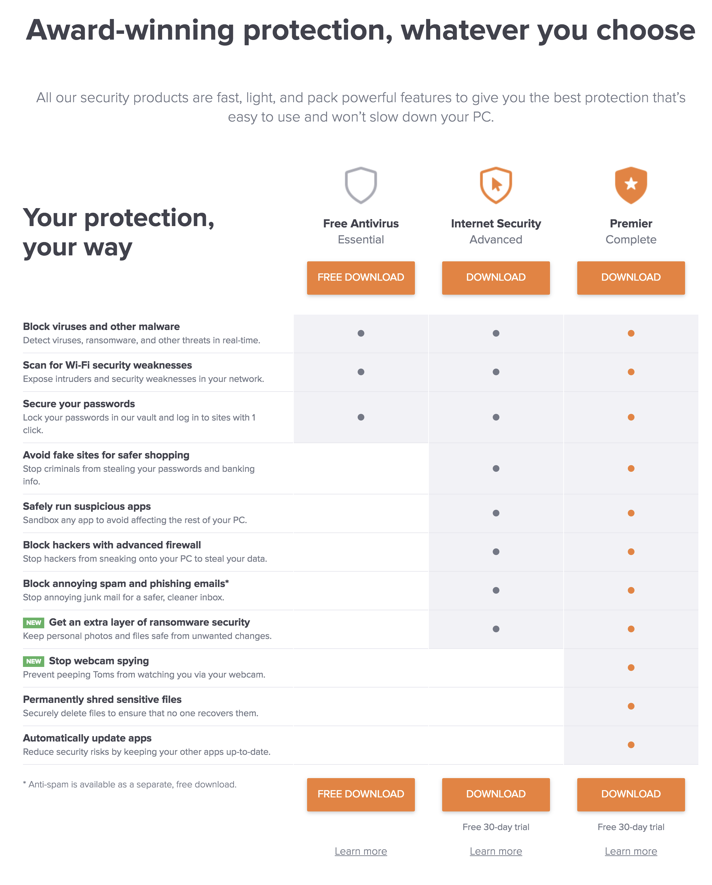 This tier is specifically for those looking for their first taste of Avast. They’re happy with a basic level of security as they want to test drive the product; see what it has to offer. Avast has made sure that the ‘essential features’ are covered in the free-of-charge tier, and in doing so they are attracting as many potential customers as possible.