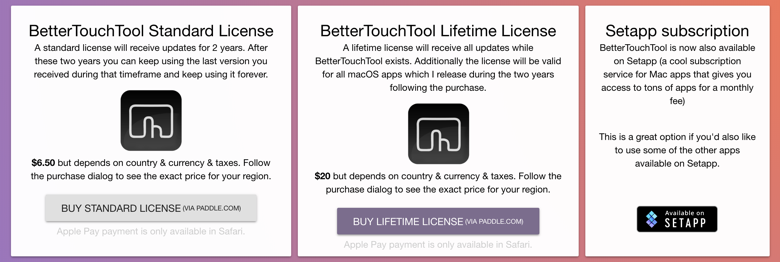 Folivora looked at selling perpetual licenses using a subscription-style enticement model. You could pay less for a standard license ($6.50) but not have the same amount of new features or, you could invest in a lifetime subscription ($20) and gain recurring updates.