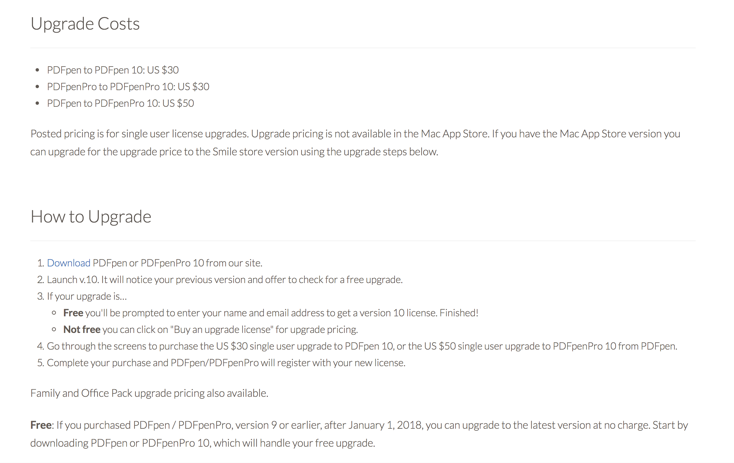 Firstly, they sent an email to their customers to encourage them to upgrade via the PDFPen app. This was because the in-app experience could automatically validate their existing license, and handle the free upgrades automatically as well.