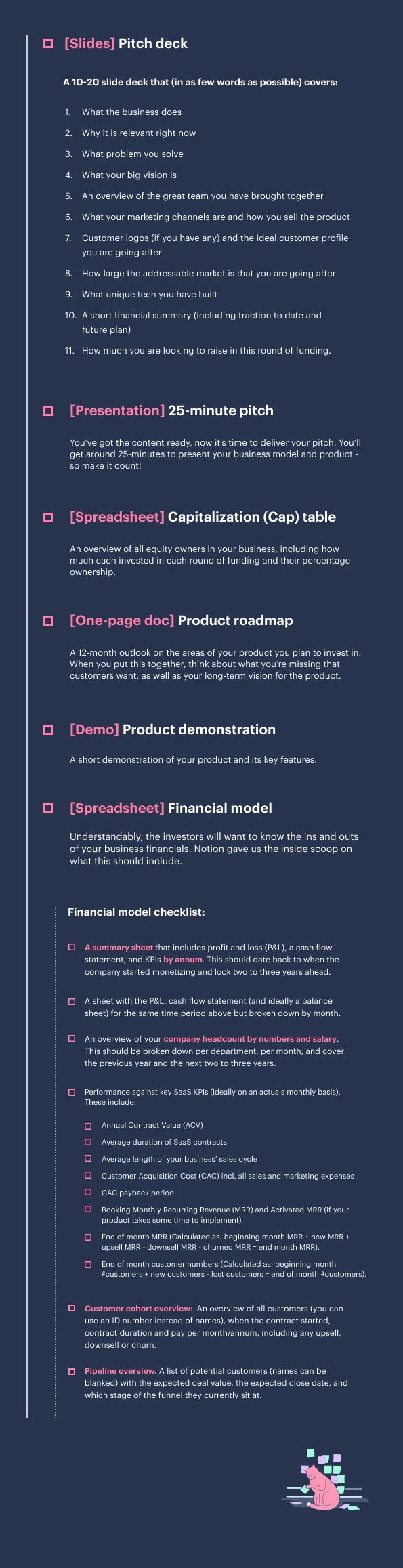 Whether you’re currently seeking funding or thinking about it for the future, the secret is preparation. With that in mind, we spoke to Notion Capital to put together this checklist with everything you’ll need ready to get you through that initial stage.