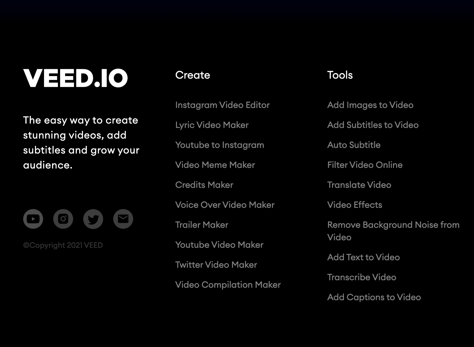 They focused on building out very detailed landing pages for unique-use cases that potential users were searching for. These included keywords and phrases such as 'translate video', 'add subtitles to video', and 'video meme maker', (to name a few). You can see these pages linked from the VEED footer.