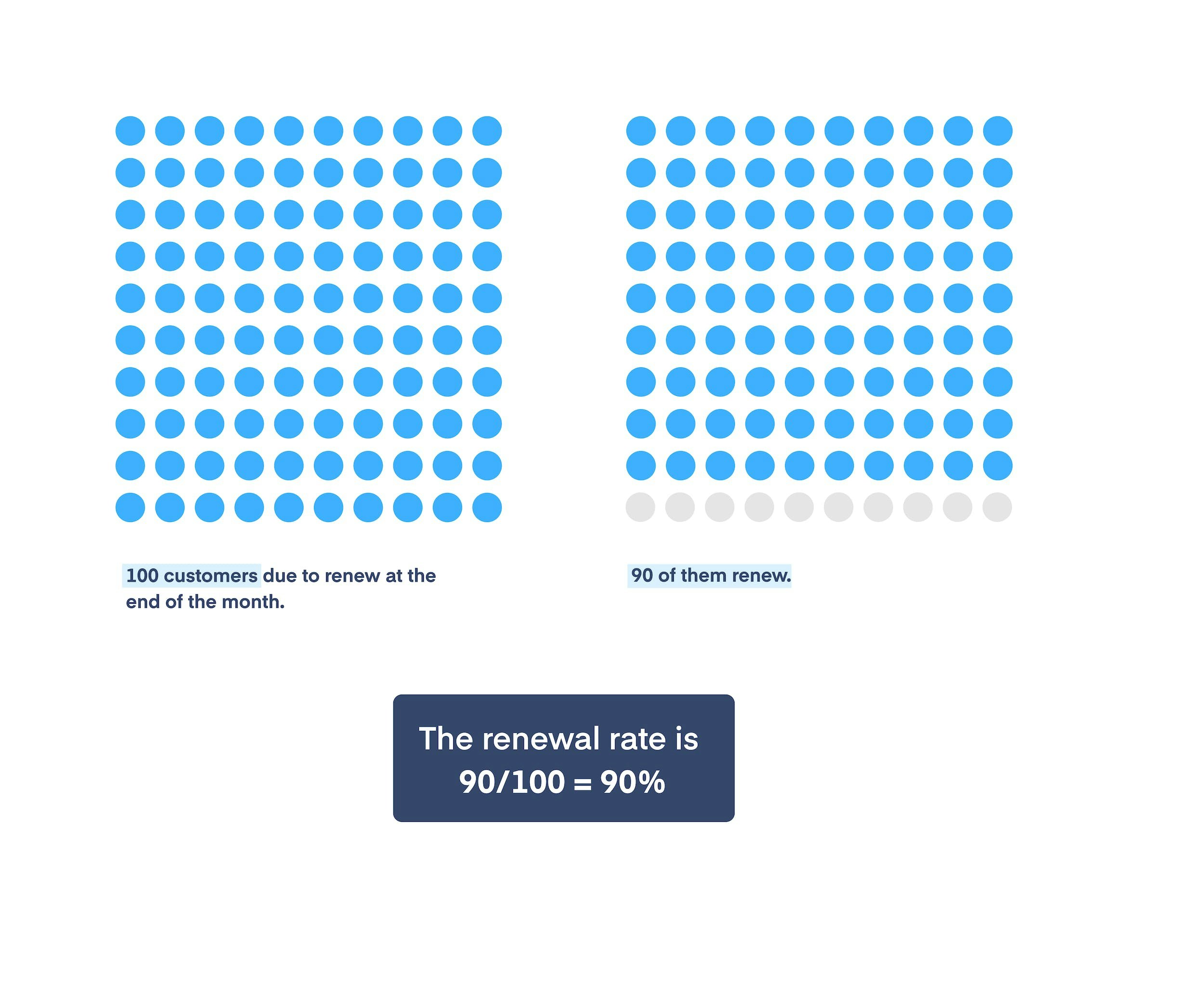 The easiest way for SaaS businesses to calculate a renewal rate is to divide the number of customers that did renew by the number of customers that could renew. And depending on the term of a subscription period, it may be more appropriate to calculate renewal rates at monthly, quarterly or even annual intervals.
