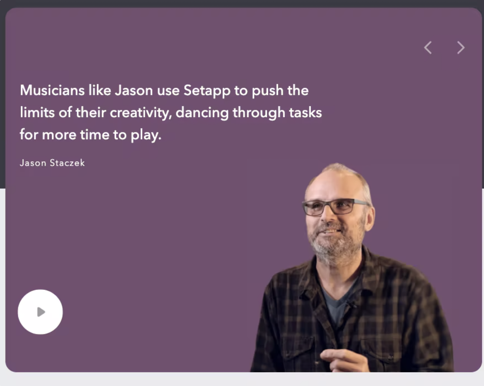 One example is Setapp. They created a strong social proof campaign in which Jason Staczek, a film composer, introduces himself, his career, and how he makes the most of Setapp. See the full video here.